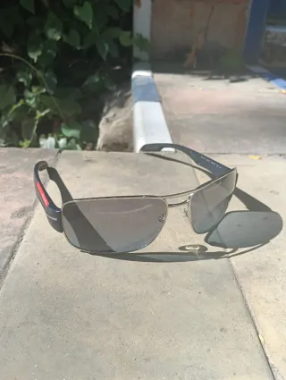 Gafas de sol de la marca Prada con un diseño moderno. - Montura en tonos negros. - Estilo deportivo y elegante. - Muy poco uso, está nuevas. - Cristales en perfecto estado. - La funda se regala.