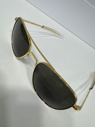 Gafas de sol vintage modelo Skymaster de American Optical. Talla lente 54mm/ puente 19mm. Un clásico con estilo piloto. Auténtico vintage, muy difícil de encontrar. Para cualquier duda, consultar antes de comprar.Son 💯 💯 originales , fabricados en EEUU en los '80 por Randolph Engineering. Montura conservada muy bien, tanto estructural como el recubrimiento dorado.Las lentes, sin arañazos, en perfecto estado.Muy buena óptica y claridad con una visión perfecta. Precio fijo !! - Montura dorada. - Lentes de cristal polarizadas de color gris . - Incluye funda protectora de piel negra y estuche duro.