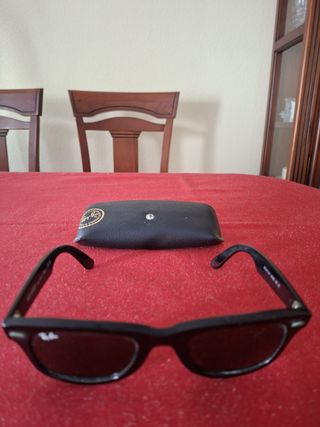Gafas de sol Ray-Ban modelo Wayfarer. - Lentes polarizadas. - Montura negra. Tiene un poco dañada la esquina de una patilla como se ve en la imagen.