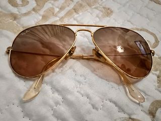 Gafas de sol estilo aviador con montura dorada y lentes degradadas en tonos marrones. - Diseño clásico aviador. - Montura metálica dorada. - Lentes con protección UV. No envio. Entrego en mano en Humanes de Madrid.
