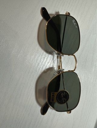 Gafas de sol Ray-Ban con montura dorada y lentes verdes. Incluyen funda. - Montura metálica dorada. - Lentes de color verde. - Funda protectora incluida.