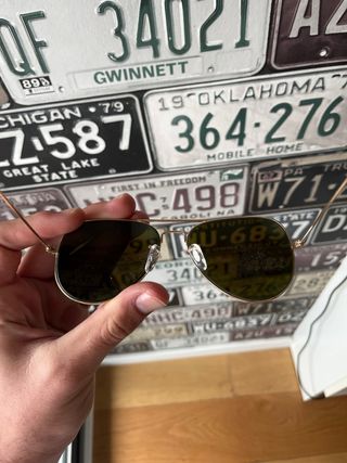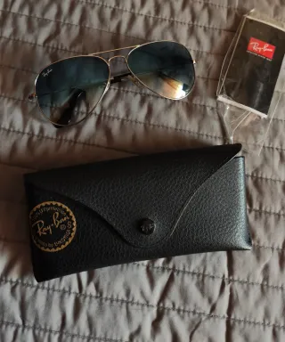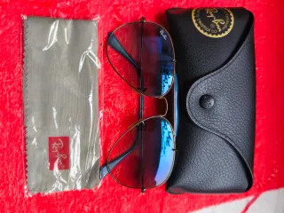 🕶️ Gafas Ray-Ban Aviator originales – Montura dorada y cristal azul espejo 🕶️ Vendo gafas Ray-Ban originales, modelo Aviator, en muy buen estado. Clásico atemporal con montura metálica dorada y cristales azules efecto espejo, muy elegantes. Cristales impecables, sin rayones, con visión clara y protección solar intacta. Montura sólida y cómoda, con leves signos estéticos del uso que no afectan al funcionamiento. Incluyen funda de cuero. Entrega en mano o envío. Cualquier duda, consúltame sin compromiso.