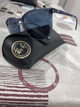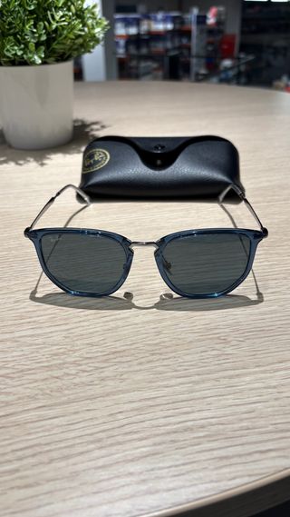 Gafas de sol Ray-Ban con montura azul. - Incluye funda protectora. - Paño de limpieza con logo.
