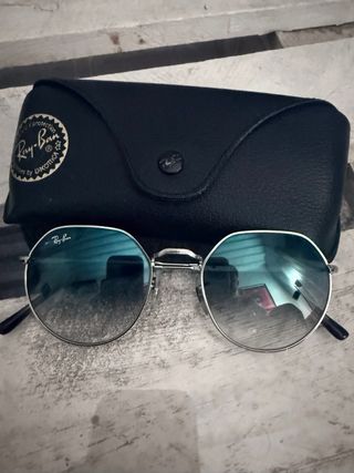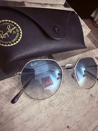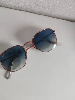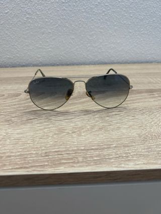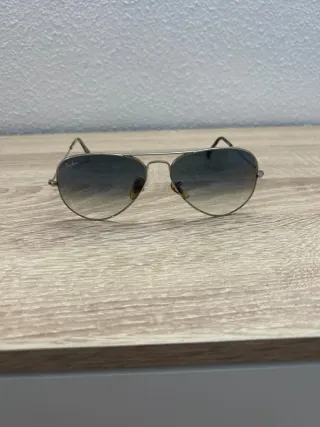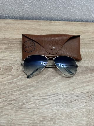 Gafas de sol Ray-Ban con un diseño clásico y elegante. - Montura metálica plateada. - Lentes degradadas en tono azul. - Muy poco uso ( no las puedo llevar) - Cristales intactos