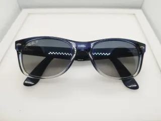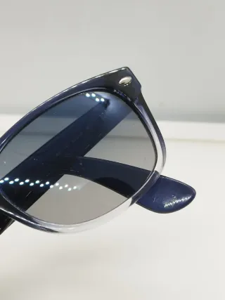 Gafas de sol Ray-Ban modelo New Wayfarer con lentes polarizadas. Talla 52 de lente - Montura de color azul.y transparente - Lentes de color gris. Alguna señal leve en el cristal, bien estado general