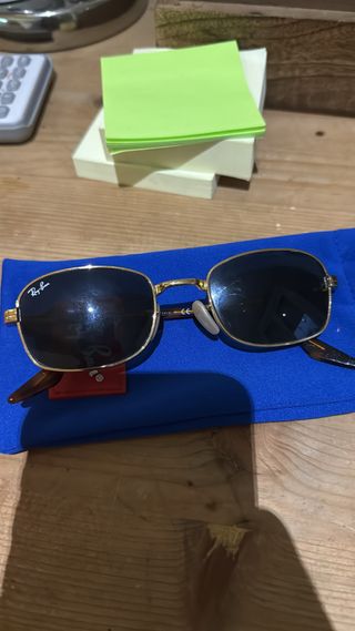 Gafas de sol Ray-Ban con un diseño moderno y elegante. - Montura combinada en dorado y negro. - Lentes con tinte azulado. (tenue) - En muy buen estado - Sin funda, solo las gafas - Originales