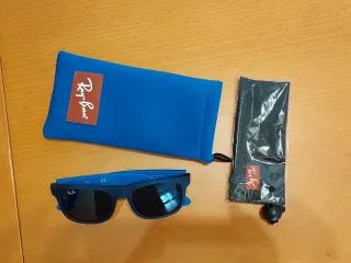 Gafas de sol Ray-Ban nuevas con un diseño moderno y elegante. - Montura de color azul translúcido. - Lentes oscuras. - Incluye funda protectora negra con el logo de Ray-Ban. - Caja original de Ray-Ban Wayfarer. Precio en tienda vale 184€ Con factura demostrable Se escucha ofertas!