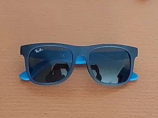 Gafas de sol Ray-Ban Junior o adulto que utilice talla de junior, en azul y naranja. Muy poco uso. - Montura de plástico resistente. - Lentes oscuras.