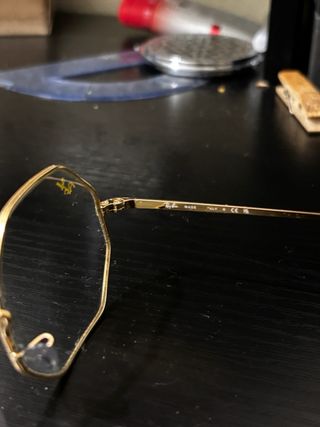 Gafas de sol Ray-Ban diseño hexagonal y lentes espejadas. - Montura dorada. - Lentes de color azul. - Forma hexagonal. Una pequeña rozadura en uno de los cristales