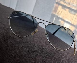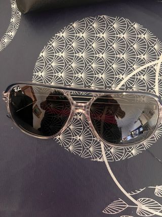 Gafas de sol Ray-Ban en tonos azules y grises. Se encuentran en excelentes condiciones. - Montura transparente. - Lentes oscuras. - Diseño aviador.