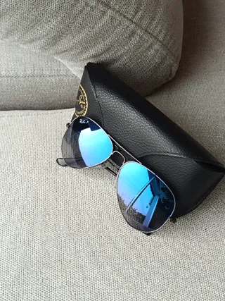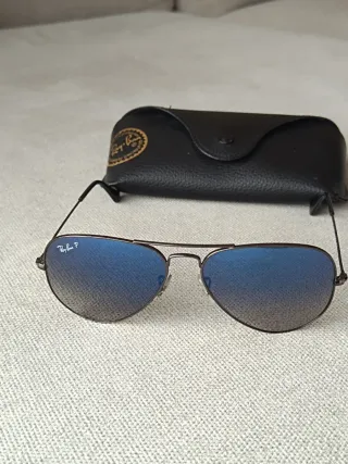 Modelo RB3025 Gafas originales en perfecto estado. Usadas en contadas ocasiones. Fue un regalo. Cristal polarizado en color azul oscuro Tamaño XL (14 cms entre bisagras) Recomendadas para chico por su tamaño