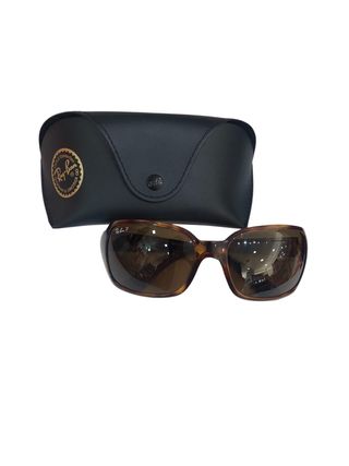Gafas de sol Ray-Ban con montura de color marrón y lentes oscuras. Un accesorio clásico y versátil. - Montura de acetato con estampado tortuga. - Lentes con protección UV.