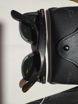 🕶️ Gafas de sol Ray-Ban Vendo gafas de sol Ray-Ban originales en excelente estado. Modelo clásico con montura negra y lentes oscuras polarizadas (P). Incluye su estuche original de cuero, paño de limpieza con logo Ray-Ban y caja original. 🔹 Estado: como nuevas, sin rayaduras ni marcas de uso. 🔹 Incluye: gafas, funda, paño y caja. 🔹 Unisex – estilo atemporal, ideal para cualquier ocasión. 🔹 Protección UV y lentes polarizadas de alta calidad.