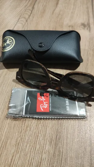 Gafas de sol Ray-Ban con un diseño clásico y elegante. - Montura de acetato con estampado tortuga. - Lentes marrones con protección UV. - Incluye funda protectora y paño de limpieza.