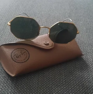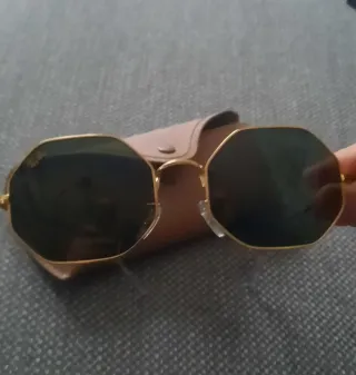 Gafas de sol Ray-Ban con un diseño octogonal y montura dorada. Incluyen su funda original. Diseño mítico de ray-ban pero no los clasicos de aviador o wayfarer, menos visto. - Lentes de color verde. - Montura metálica dorada. - Diseño octogonal. - Funda de protección incluida.