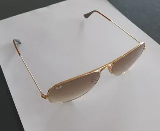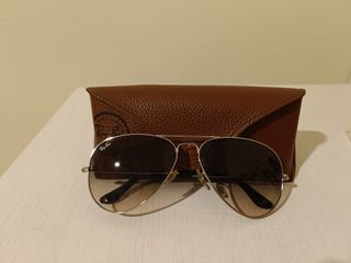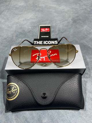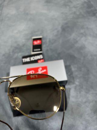 Gafas de sol estilo aviador con montura dorada y lentes degradadas polarizadas. - Montura metálica dorada. - Lentes con degradado de gris azulado polarizadas. - Logo de Ray-Ban grabado en la lente izquierda. - Totalmente auténticas. - Nuevas a estrenar