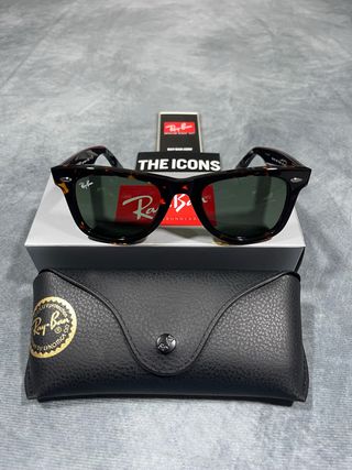 Ray-Ban wayfarer orb2140 nuevas - Incluye estuche de cuero marrón. - Paño de limpieza de microfibra gris. - Documentación original. Están nuevas sin uso fue un regalo de Navidad fallido