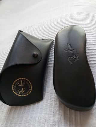 Funda de gafas de sol original de Ray Ban, para gafas del tipo de la última foto. Las gafas no se venden. Buen estado.Más fundas de gafas en mi perfil