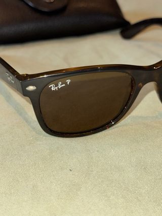 Gafas de sol Ray-Ban con montura marrón y lentes oscuras. Incluyen su estuche. - Montura de tortuga. - Lentes polarizadas.