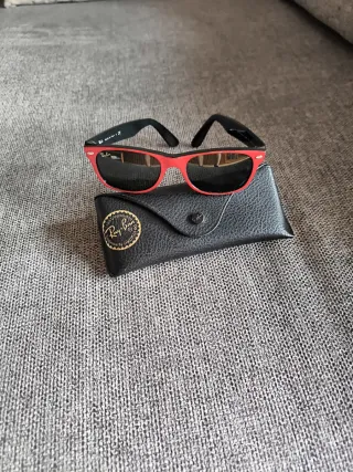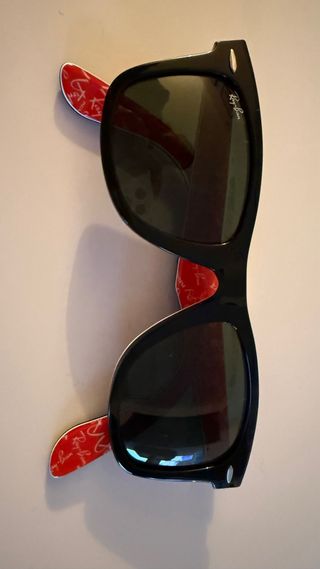 Gafas de sol Ray-Ban negras y rojas.