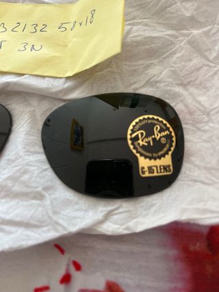 Lentes de repuesto para gafas Ray-Ban. - Modelo RB2132. - Medidas 58x18. - Longitud de varilla 145. - Color G-15 Lens. - Original
