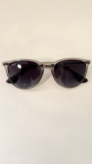 Ray-Ban Erika Color Mix con una montura gris transparente pulida y lentes grises degradadas. El código de modelo para esta combinación de colores específica es RB4171 6513/8G. - Montura de color gris translúcido. - Lentes con protección UV. - Incluye funda y paño de limpieza.