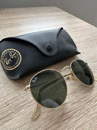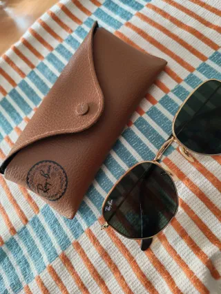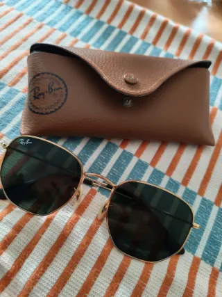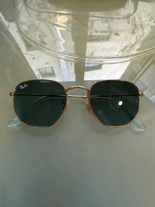 Vendo gafas de sol Ray-Ban hexagonales originales. Tienen unos 4 años y están en muy buen estado, con uso normal y bien cuidadas (ver fotos). Lentes verdes clásicas y montura metálica dorada. Precio original: 163 €. Se venden por falta de uso.