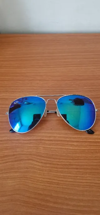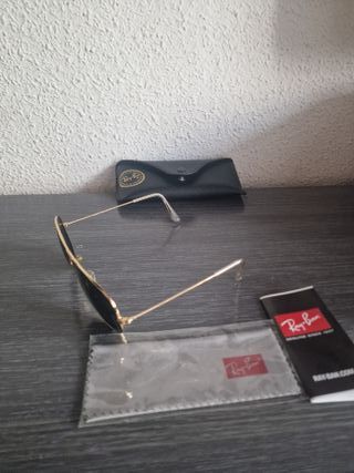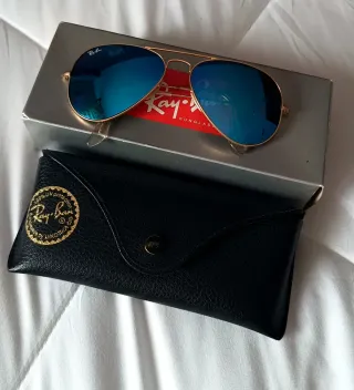 Gafas de sol Ray-Ban con un diseño clásico y moderno. - Lentes de espejo en color azul. - Montura metálica dorada. - Incluye estuche negro. Buen estado, poco uso y están perfectas.