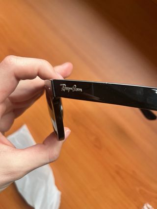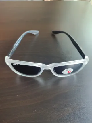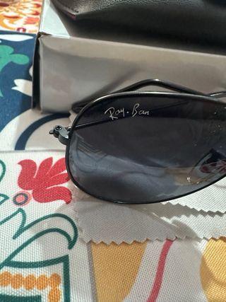 Gafas de sol con un diseño moderno y elegante, adjunto fotos de como se ve el cristal al trasluz, han sido usadas pero se conservan bien y en las patas adjunto que hay un pelín de piquetes pero muy pequeños - Montura metálica en tono plateado. - Lentes con degradado gris. - Logo de Ray-Ban en la lente izquierda.