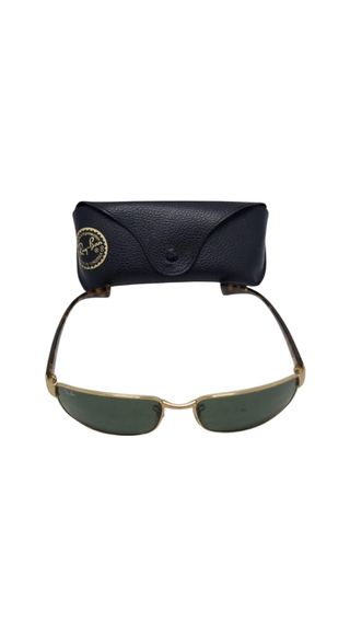 Gafas de sol Ray-Ban con un diseño clásico y elegante. - Montura metálica dorada. - Lentes de color verde. - Incluye funda protectora y paño de limpieza.