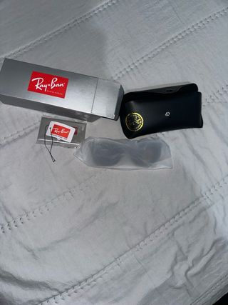 Gafas de sol Ray-Ban en color negro, con su caja y funda. - Incluye caja original. - Funda protectora. - Etiqueta de autenticidad.