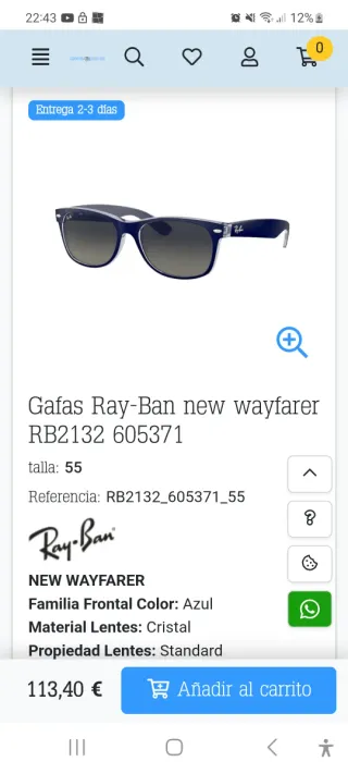 Cristal de repuesto originales para Ray-Ban Meta Wayfarer. SOLO ES EL CRISTAL NO LAS GAFAS ENTERAS - Color oscuro. - Diseño Wayfarer. - Tamaño de montura 50 Anchura de las lentes 50mm Anchura del puente 22mm Talla de la montura: 50-22
