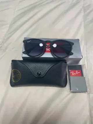Gafas de sol Ray-Ban modelo Erika polarizadas, en excelente estado y con poco uso. Incluyen su funda original y paño de limpieza. - Montura negra mate. - Lentes polarizadas grises con degradado. - Incluye funda y paño de microfibra.