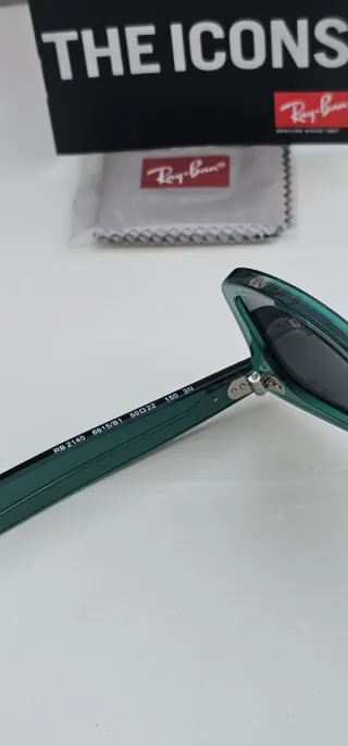 Gafas de sol Ray-Ban gen 2 en su caja sin abrir talla m color negro brillante. - Lentes de color verde oscuro. - Diseño moderno y elegante.
