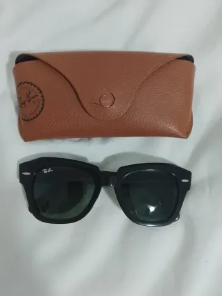 Gafas de sol Ray-Ban con montura negra y lentes oscuras. Se incluyen con su funda de color marrón. Modelo: ray-ban state street rb 2186 901 31 Usadas Funda está un poco rota (foto) Las gafas tienen el nombre en las patillas oxidado (foto) VENTA EN PERSONA EN VALENCIA O SI NO ENVÍO
