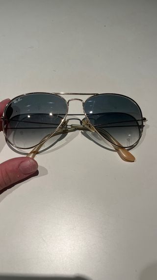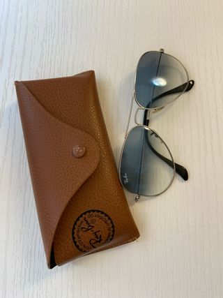 Gafas de sol Ray-Ban estilo aviador. - Montura metálica plateada. - Lentes con acabado azul. - Incluye funda y paño de limpieza.45€,no negociables