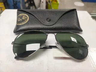 gafas de sol Ray-Ban Aviator originales, con montura dorada y lentes verdes clásicas. Modelo icónico, ligero y muy cómodo. 🔹 Estado: usadas, en buen estado general 🔹 Lentes en buen estado, sin rayones importantes 🔹 Montura metálica intacta 🔹 Almohadillas con signos de uso (ver fotos) 🔹 Incluye funda original Ray-Ban (con una pequeña grieta visible)