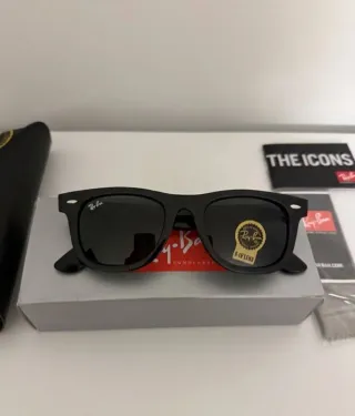 Gafas de sol Ray-Ban con lentes negras. -Sin estrenar - Incluye funda protectora. - Incluye paño de limpieza. - Incluye folleto The Icons. -incluye bolsa