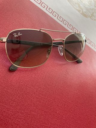 Gafas de sol Ray-Ban con un diseño clásico y elegante. Son compradas en diciembre ,con recibo de pago - Montura metálica dorada. - Lentes degradadas en tono marrón. - Incluye funda protectora y caja.