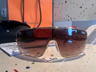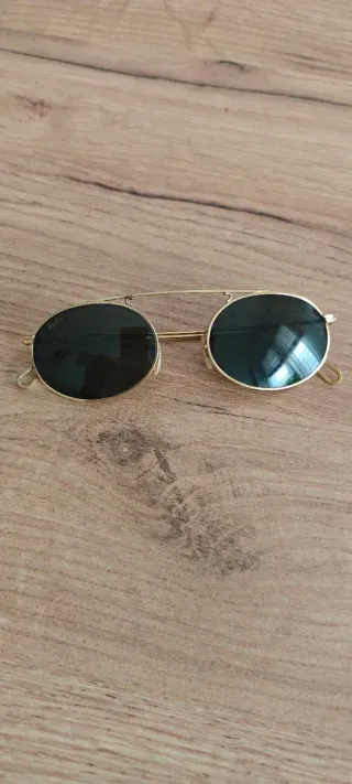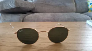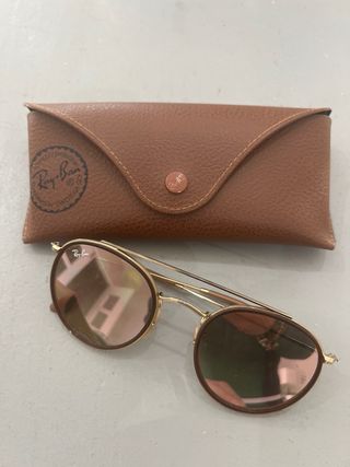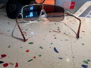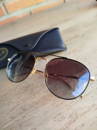 Gafas de sol con montura marrón y detalles dorados. - Estilo clásico. - Lentes con degradado. Algunos micro arañazos pero se pueden utilizar. Las ray ban creo que no son verdaderas .