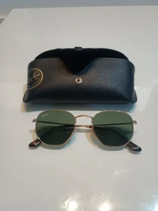 Gafas de sol Ray-Ban originales compradas desde la tienda oficial de la Maquinista Ray-Ban- Modelo 3547 con montura dorada y lentes verdes. En excelente estado tanto los cristales como la montura, muy poco uso, se entregan con estuche que ven en foto - Montura metálica dorada. - Lentes de cristal verde.