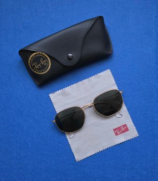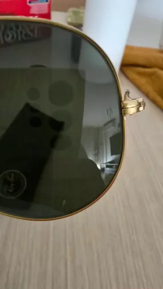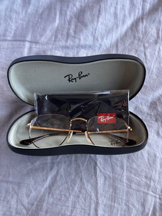 Gafas de sol Ray-Ban con un diseño icónico. - Montura con detalles dorados. - Lentes oscuras. Leve roce en la lente, casi imperceptible No impide la buena visibilidad