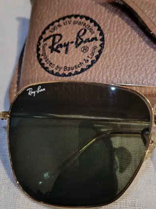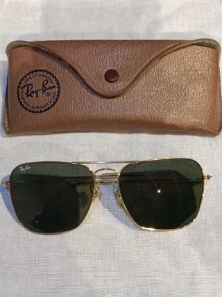 Gafas de sol Ray-Ban modelo Caravan, fabricadas en EE. UU. por Bausch & Lomb. Calibre 58. Usadas en muy buen estado. - Montura metálica dorada. - Lentes de cristal verde. - Incluye funda original.