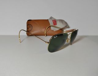 Gafas de sol marca Rayban, montura dorada y cristal de sol verdoso. Las vendo porque hace tiempo que no las uso. Tienen algún puntito en el cristal pero NO entorpecen a la visión, se ve perfectamente. Tienen ya años pero están bien cuidadas. Vienen en su funda original y el paño de limpiar las gafas también es el original.