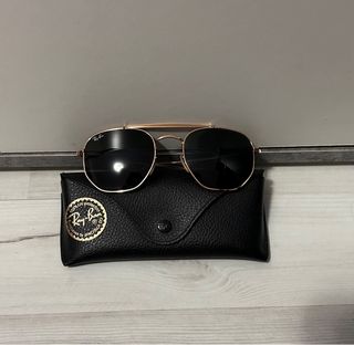 Gafas de sol Ray-Ban con su funda protectora. - Montura dorada. - Funda negra de cuero
