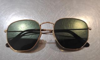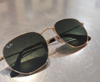 Gafas de sol Ray-Ban hexagonales, con montura dorada y lentes verdes. Están en un estado impecable . - Lentes planas. - Montura fina y elegante. Incluye funda negra con paño para limpieza. Mañana pondré fotos