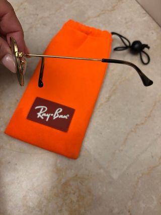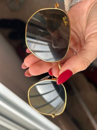 Vendo gafas Ray-Ban originales, montura dorada y lentes con ligero tono rosado. Están en muy buen estado, sin rayones importantes y con las patillas firmes. Modelo ligero, cómodo y con un look muy clean.