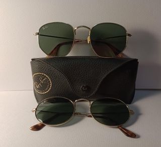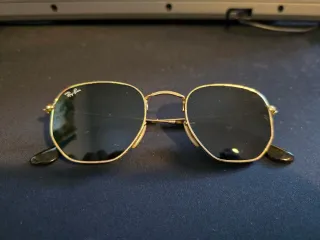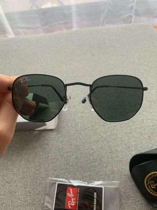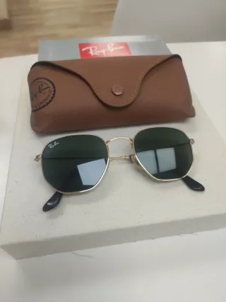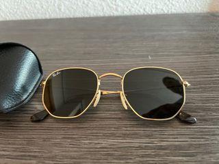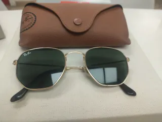 Vendo gafas de sol Ray-Ban modelo hexagonal.Polarizadas. Talla 51 La estandar. La que suelen tener en tienda. pongo foto de optica. Color dorado y cristal verde oscuro. Nuevas.con caja y estuche.me las regalaron y no las uso. Son polarizadas valen el doble de unas normales. Podría aceptar cambio por Ray ban Justin en el mismo estado.