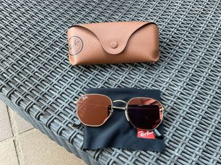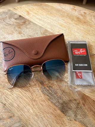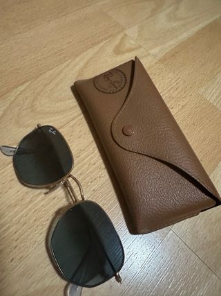 Gafas de sol Ray-Ban con montura hexagonal dorada. Se entregan con su caja original,estuche y factura de compra. - Incluye funda protectora. - Paño de limpieza con logo. Están completamente nuevas no tienen ni rasguños ni marcas ya que no han sido utilizadas.