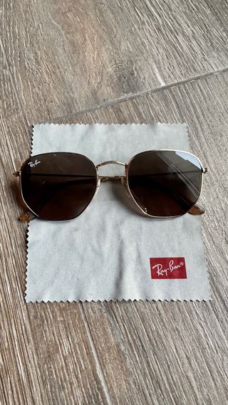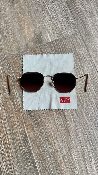 Gafas de sol Ray-Ban con un diseño hexagonal y montura dorada. Las lentes presentan un degradado de marrón. - Montura metálica dorada. - Lentes con efecto degradado marrón. Nuevas cuestan 170€ El precio no es negociable.